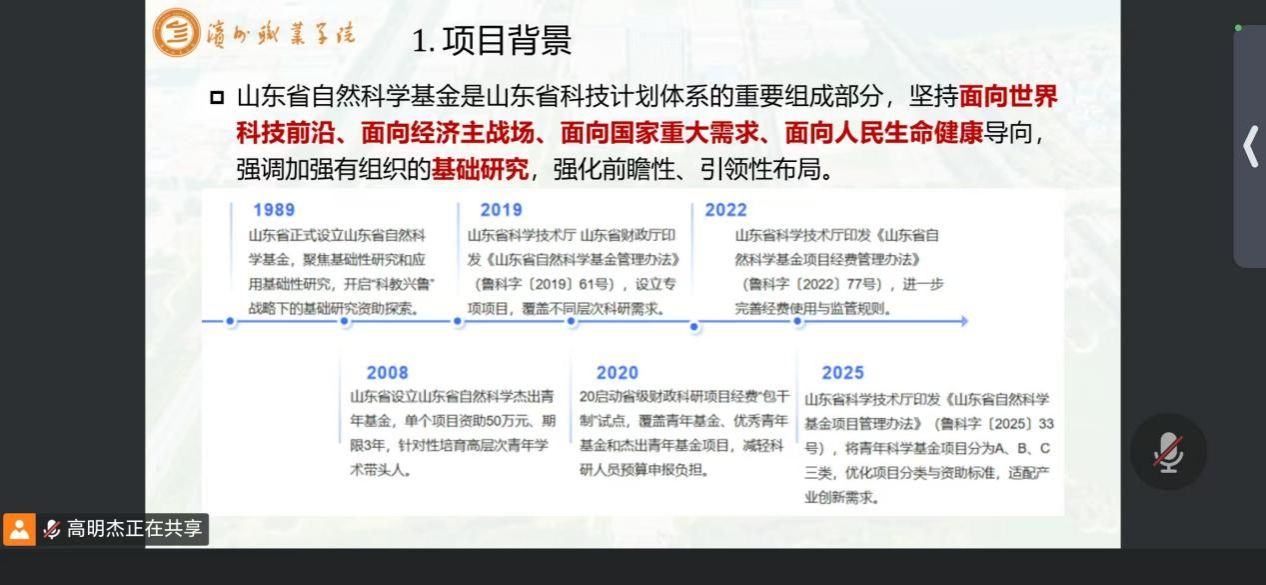 本网经济管理学院、科研处讯 为进一步提升学院教师科研能力,破解青年科学基金项目申报中的难点堵点,2月3日,经济管理学院邀请科研处相关负责同志为老师们开展了科研能力提升专题培训,并为青年教师提供青年科学基金项目一对一申报辅导,经济管理学院党总支书记、院长、教学副院长、全体博士及近三年新进教师参加。